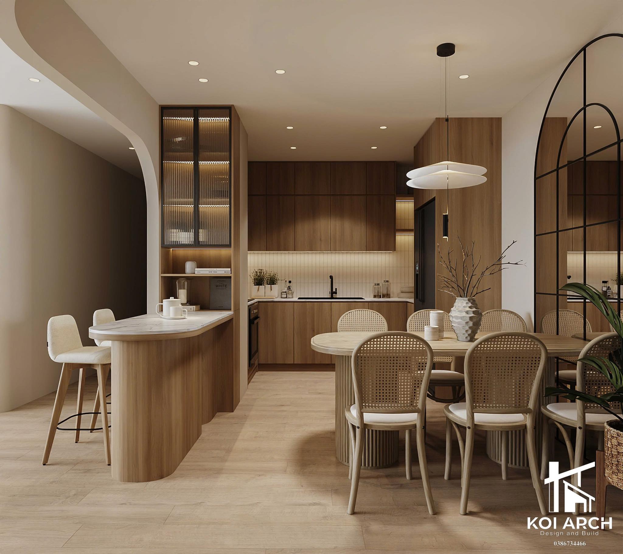 Các món đồ nội thất được tiết chế một cách tối đa, chỉ giữ lại những vật dụng cơ bản và thiết yếu. Những đồ dùng như bàn, ghế, tủ, bếp cũng được thiết kế đơn giản, không rườm rà, đề cao sự hòa hợp với tổng thể không gian thiết kế tối giản.
